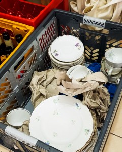 In der Küche und draußen am Grill sind immer noch alle mit Hochdruck beschäftigt. Pommes werden immer wieder nach frittiert. Nochmal schnell Trüffel Mayonnaise gerührt, Tomaten nachgeschnitten. Zeitgleich wird schon ein großer Teil des Geschirrs gespült, in die Transportboxen verräumt. Sortiert, welchem Lieferant, was gehört. Wohin kommen gleich nochmal die Pfandflaschen? Und, falls noch jemand Hunger haben sollte, bereitet Rico persönlich gerade die fulminante Dessertetagere und Crème brûlée im Löffelchen vor. Neben tollem Obst gibt es New York Cheesecake Stückchen, Brownie Würfelchen, Eis und noch viel viel mehr.