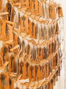 als das Buffet draußen schon rege Anklang findet. Es wird immer dunkler und man sieht nicht mehr, was man nehmen möchte. HerrBpunkt hätte nicht mit der Wimper gezuckt und Ducktape, zu Befestigung des Strahlers, ausgepackt. Leider gibt es ganz und gar wunderbare Dekorationen, nur leider kein Seil und kein Ducktape. Nach ein paar Minuten ist das Problem, dank der stabilen Schnur, die den Flaschenöffner sichert, gelöst. Der Flaschenöffner darf nun kurz ungebunden sein, der Strahler hängt und die Köche sehen wieder, was sie den Gästen auf die Burger stapeln.