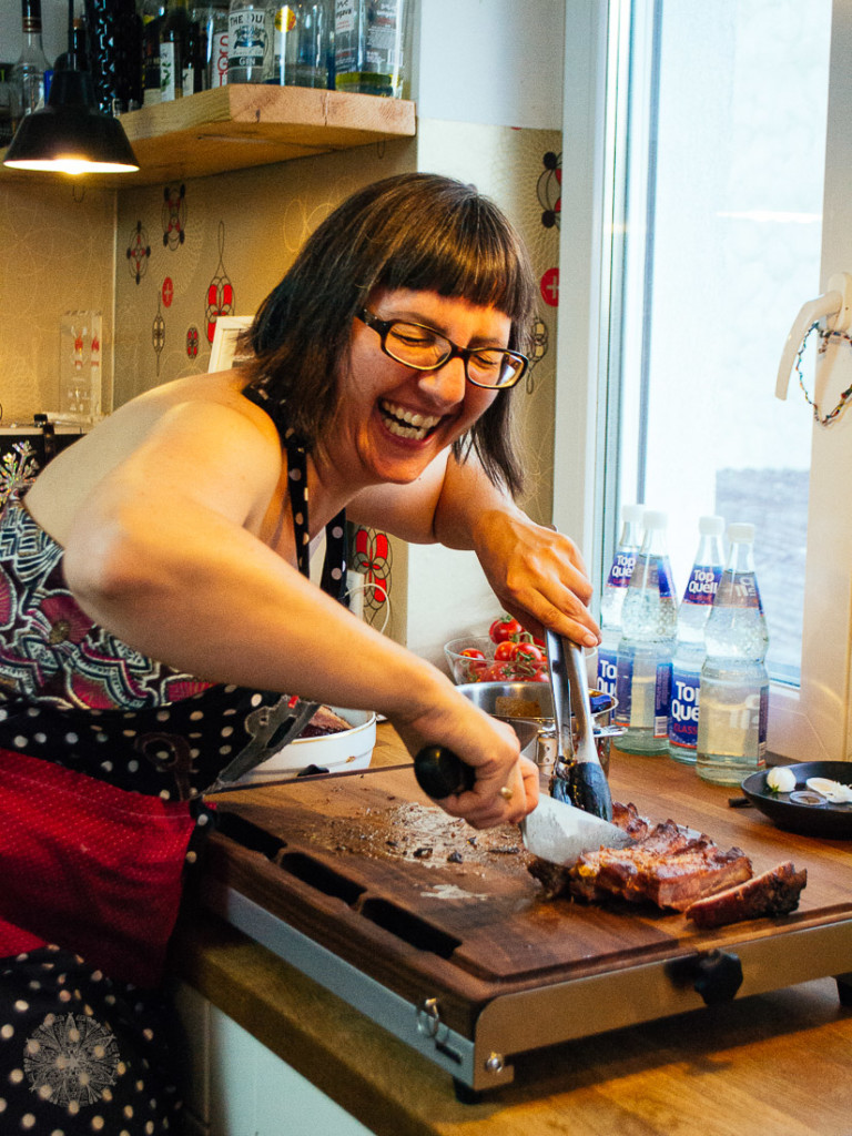 Dieses Jahr war die Runde etwas kleiner, weil irgendwie sehr viele Freunde für Pfingsten einen Kurzurlaub geplant hatten. Macht nicht, wir feiern eh den Sommer über einfach weiter, oder was meinen Sie? Sie brauchen einen Grund? Oh, ich hab einen: „Es ist Samstag!“ Oder wie wäre es mit „das Wetter ist toll“, oh, ich hab‘s „alleine Essen ist langweilig“. Nein? „Ich weihe neue Messer ein“, „teste die Grenzen des Grills“, „wollte schon immer mal wieder ein Lagerfeuer machen“,….